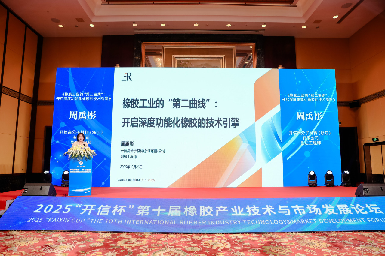 主旨报告环节,业界权威专家与企业领军人物围绕核心议题作主旨报告,内容兼具前沿性与实用性。开信高分子材料(浙江)有限公司副总工程师周禹彤以《橡胶工业的“第二曲线”:开启深度功能化橡胶的技术引擎》为题,剖析功能化橡胶研发核心方向,结合案例阐释技术创新对提升产业附加值的关键作用。青岛科技大学教授常大勇聚焦航天领域需求,作《浅析航天橡胶制品技术特点》报告,解析航天橡胶技术标准与研发难点,为高端产品研发提供思路。