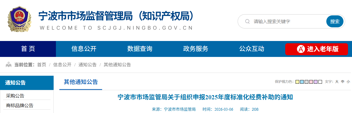 根据《宁波市标准化补助经费管理办法》(甬市监标〔2024〕166号),决定组织开展2025年度标准化经费补助申报工作,现将有关事项通知如下: